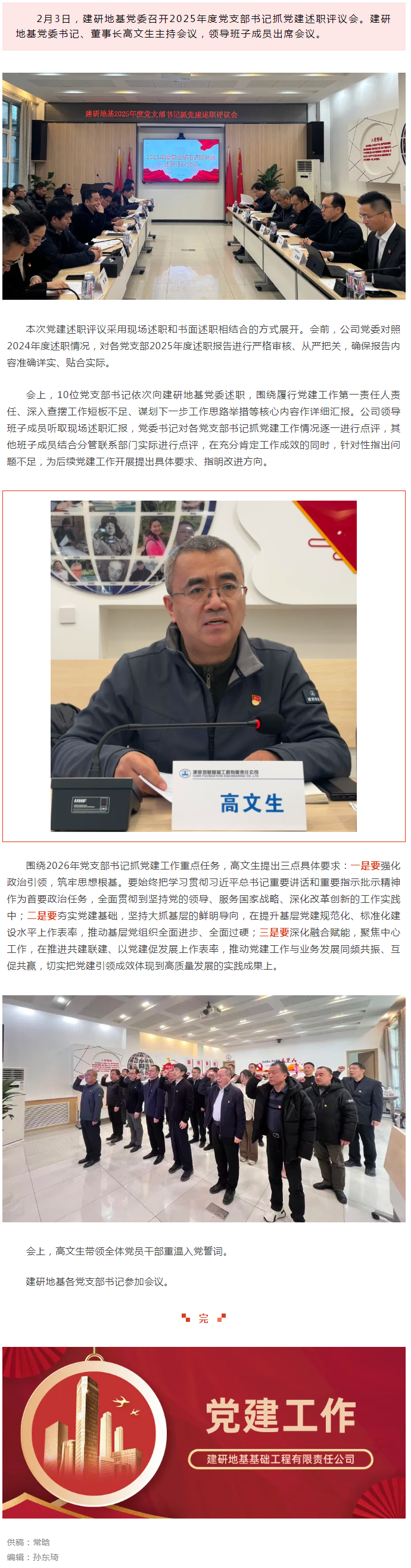 建研地基党委召开2025年度党支部书记抓党建述职评议会议