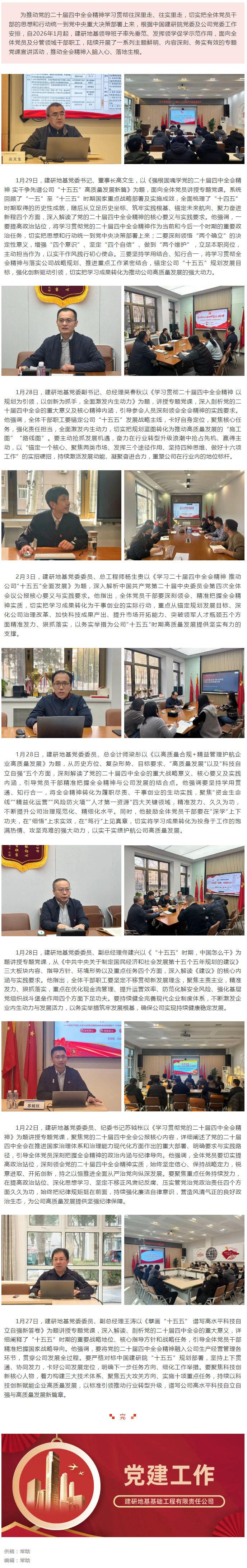 建研地基领导班子开展深入学习贯彻党的二十届四中全会精神专题党课宣讲