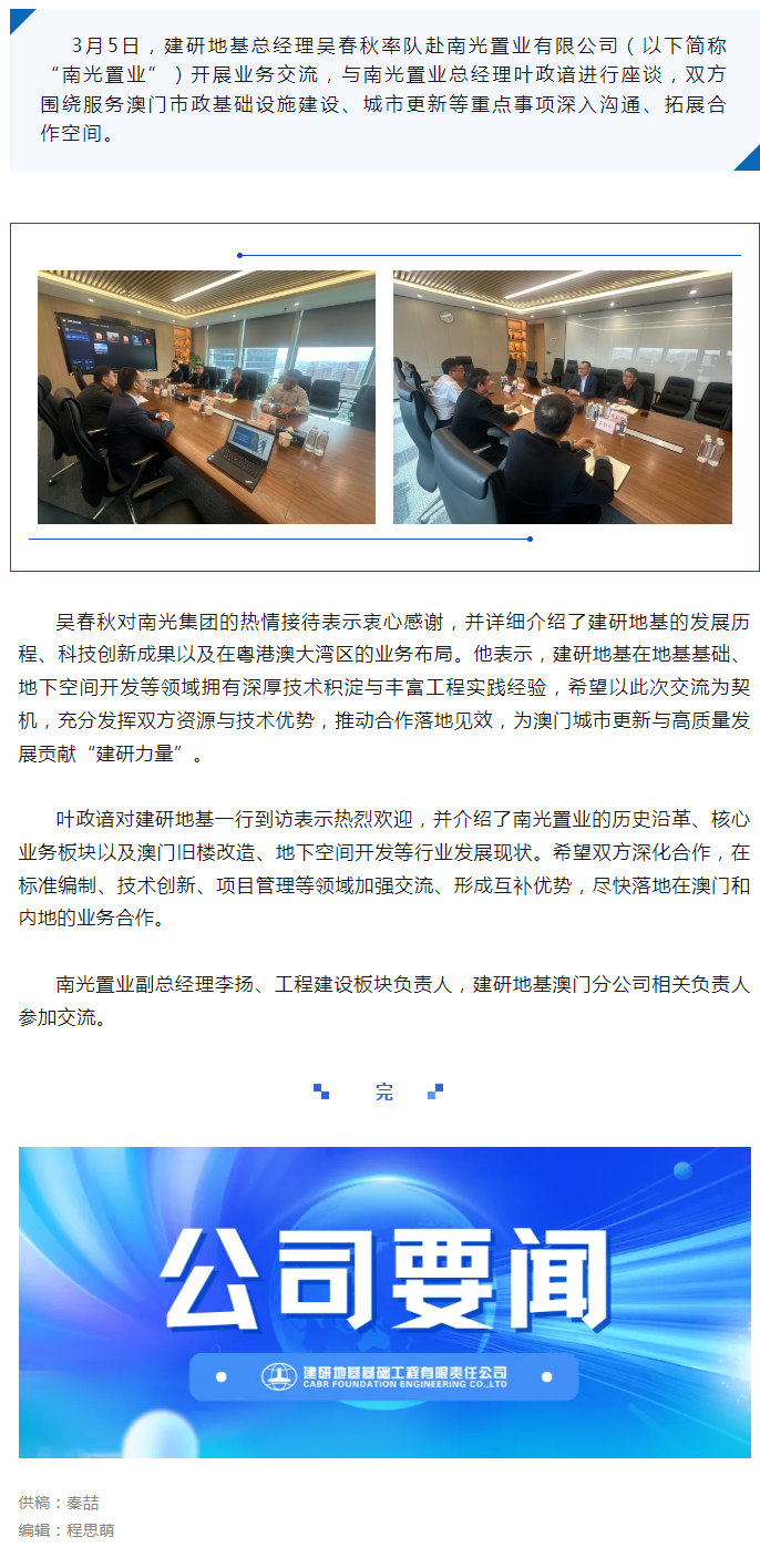 建研地基总经理吴春秋率队赴南光置业开展业务交流
