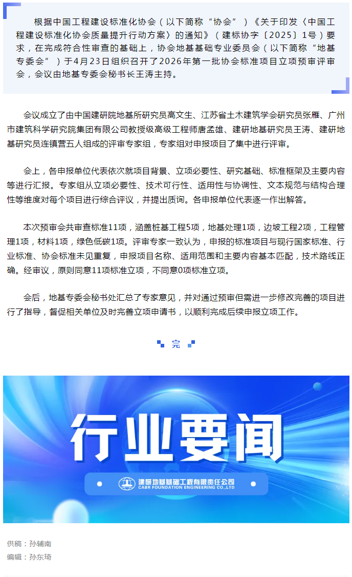中国工程建设标准化协会地基专委会组织召开2026年第一批协会标准项目立项预审评审会