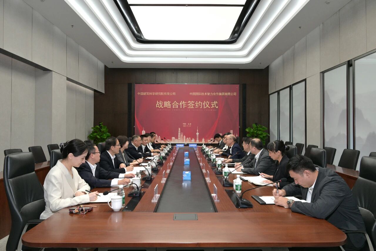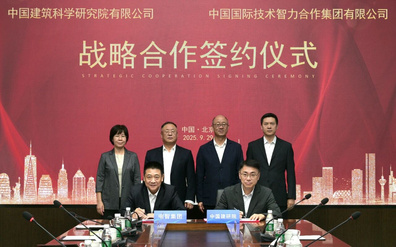 9月29日,中国建研院与中智集团签署战略合作协议。中国建研院党委书记、董事长许杰峰,党委委员、纪委书记贺长青,中智集团党委书记、董事长卜玉龙,党委委员、纪委书记雷勤,副总经理王晓辉出席签约仪式。中国建研院党委副书记、董事、工会主席王阳,中智集团党委副书记、董事、工会主席张杰代表双方签署协议。