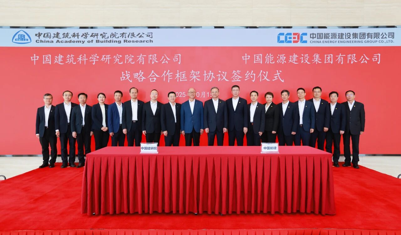 中国建研院与中国能源建设集团有限公司(以下简称“中国能建”)签署战略合作协议,在科技创新、服务国家战略、引领行业发展等方面优势突出。